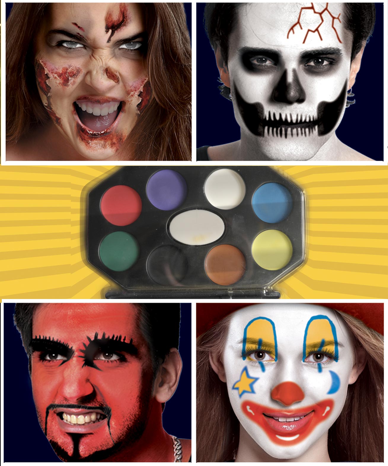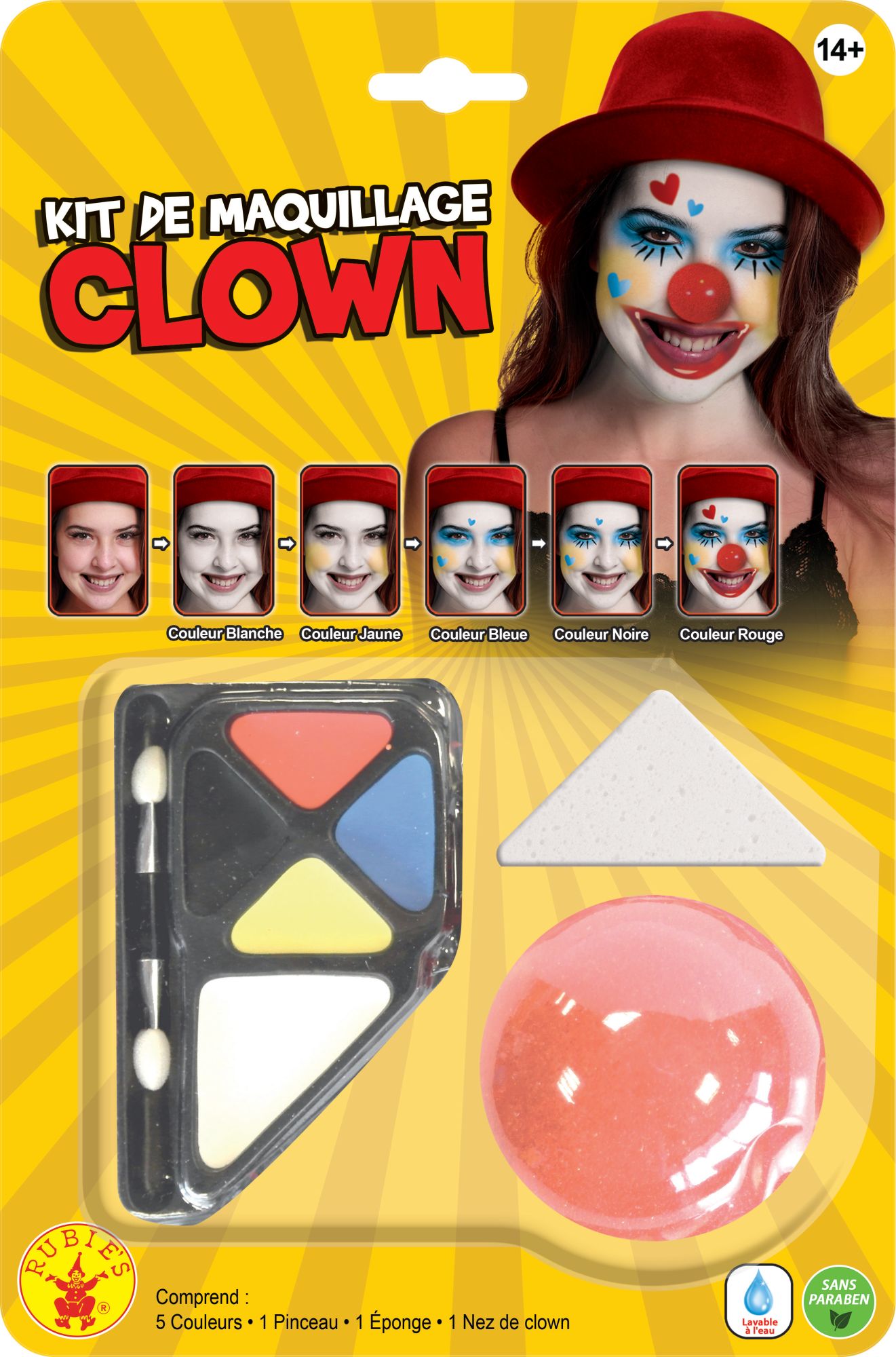 Kit maquillage clown (5 couleurs + 1 pinceau et 1 nez)