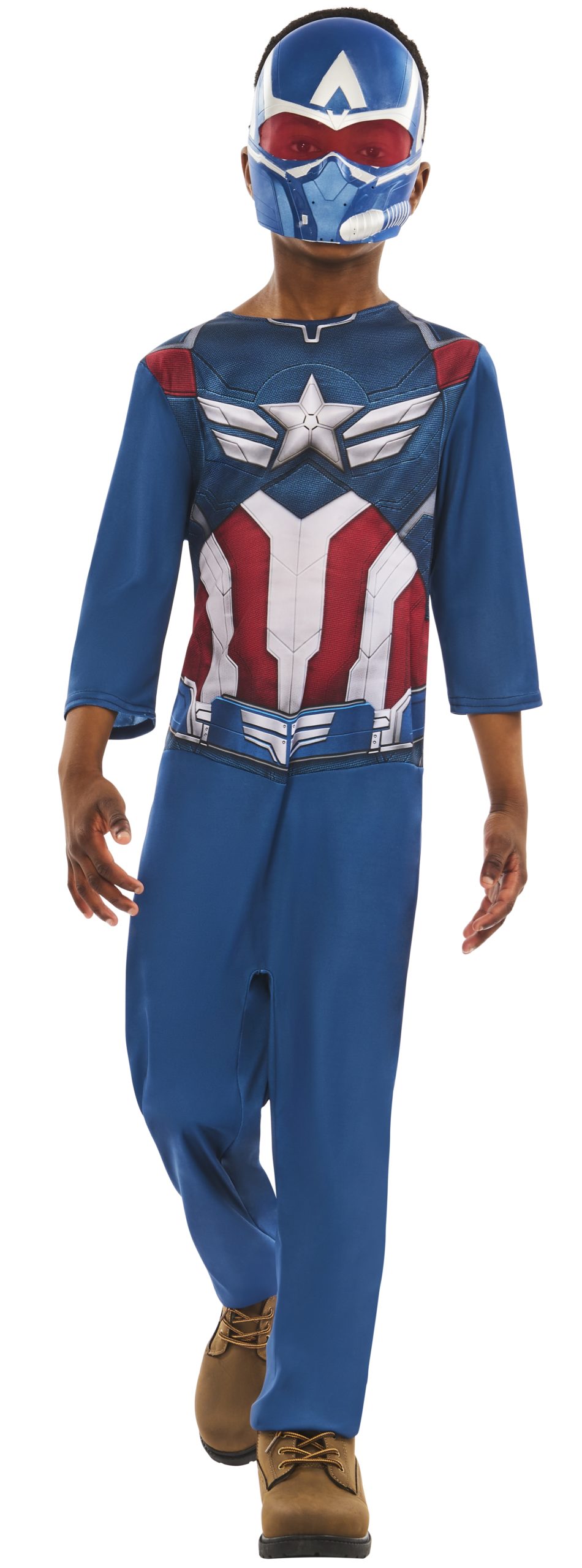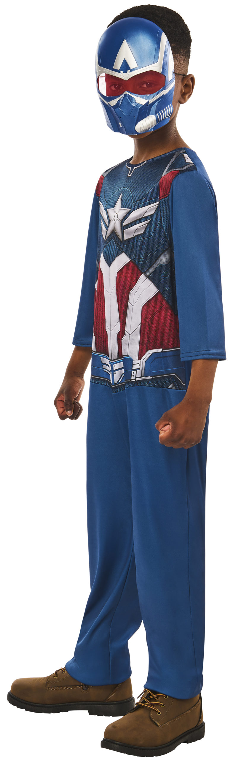 Un masque de Captain America en PVC avec attache élastique à l’arrière et système de fermeture velcro