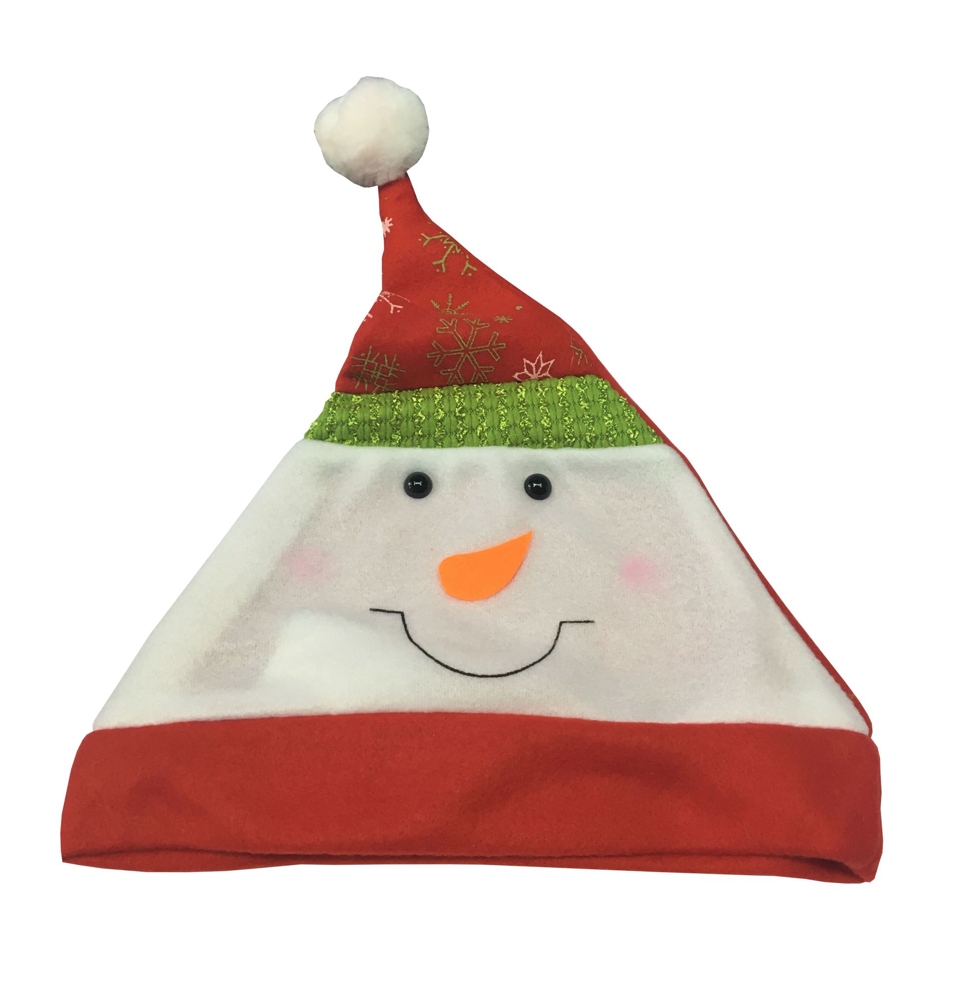 Un bonnet de Père Noël avec pompon et motif Bonhomme de neige en relief.