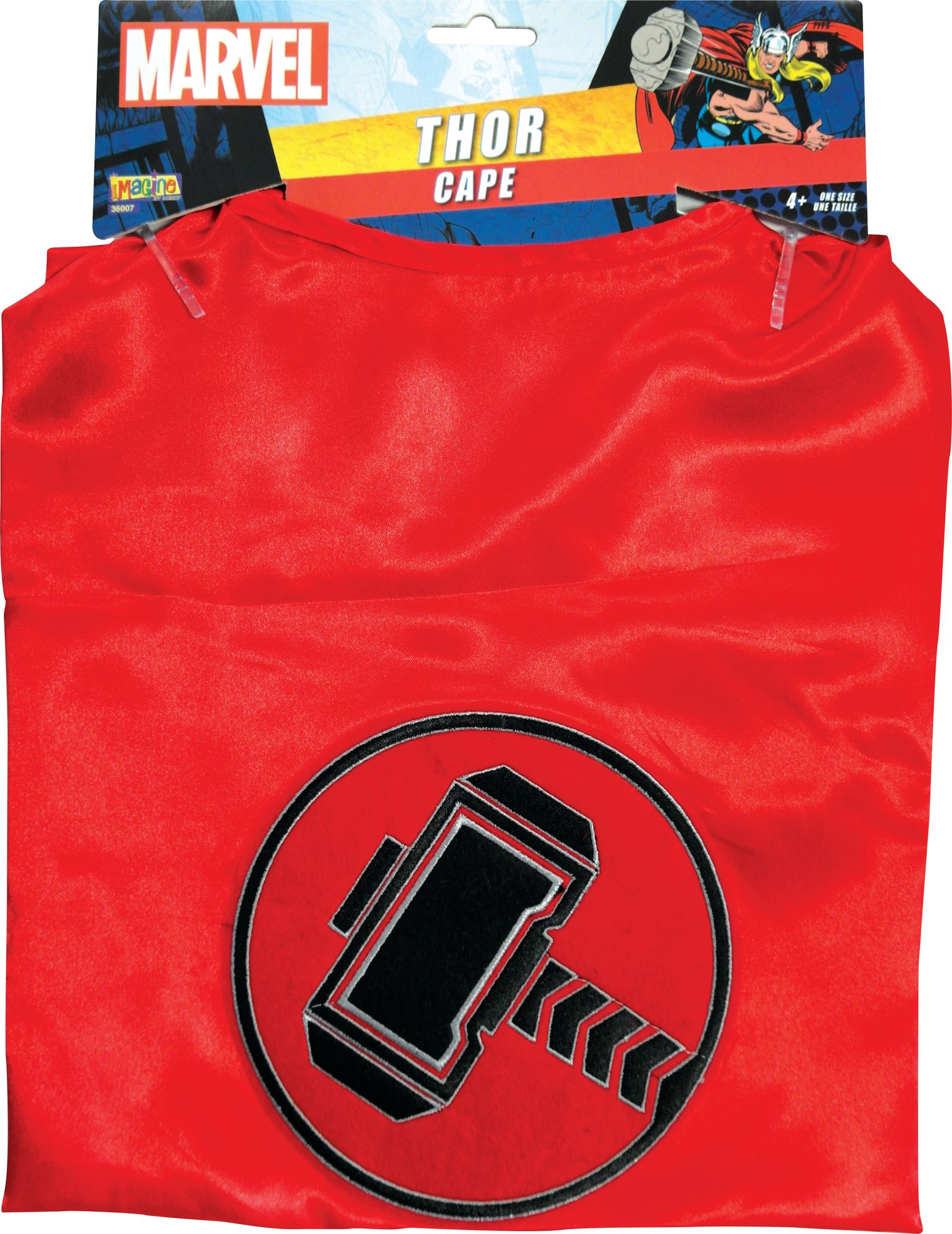 Style: RG36007Description: Une longue cape rouge imprimée en tissu satiné avec logo marteau de Thor dans le dos.Attache cordon sur le devantPackaging: Cartonette PegCatégories : Accessoire, AVENGERS, Capes, Enfant, MARVEL, ThorThemes: Accessoires, Capes, Carnaval