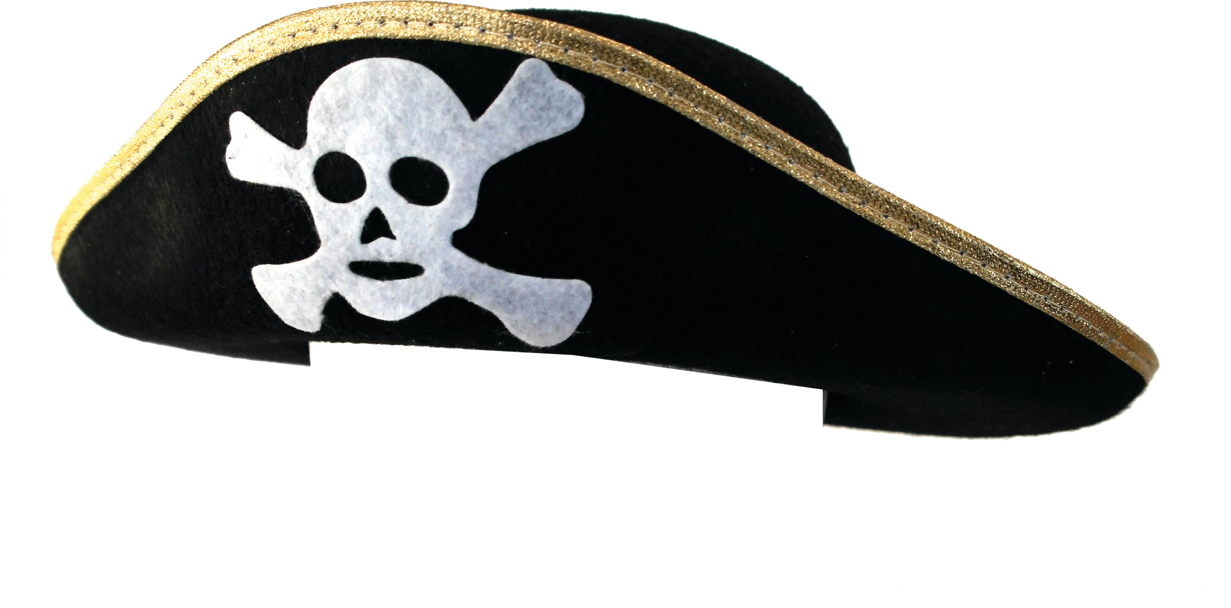 Un chapeau en feutrine rigide avec bordure doréeUne tête de mort en feutrine