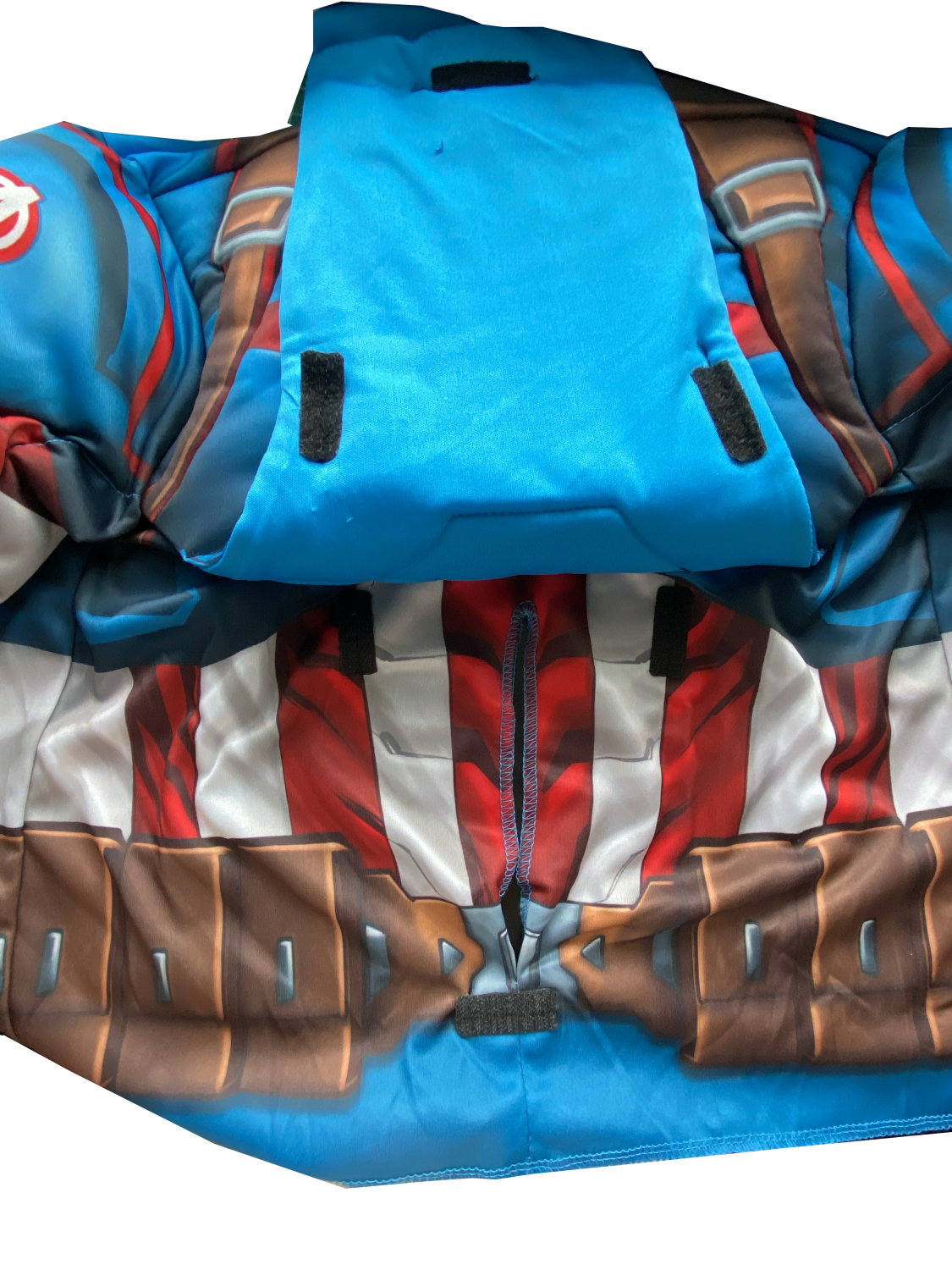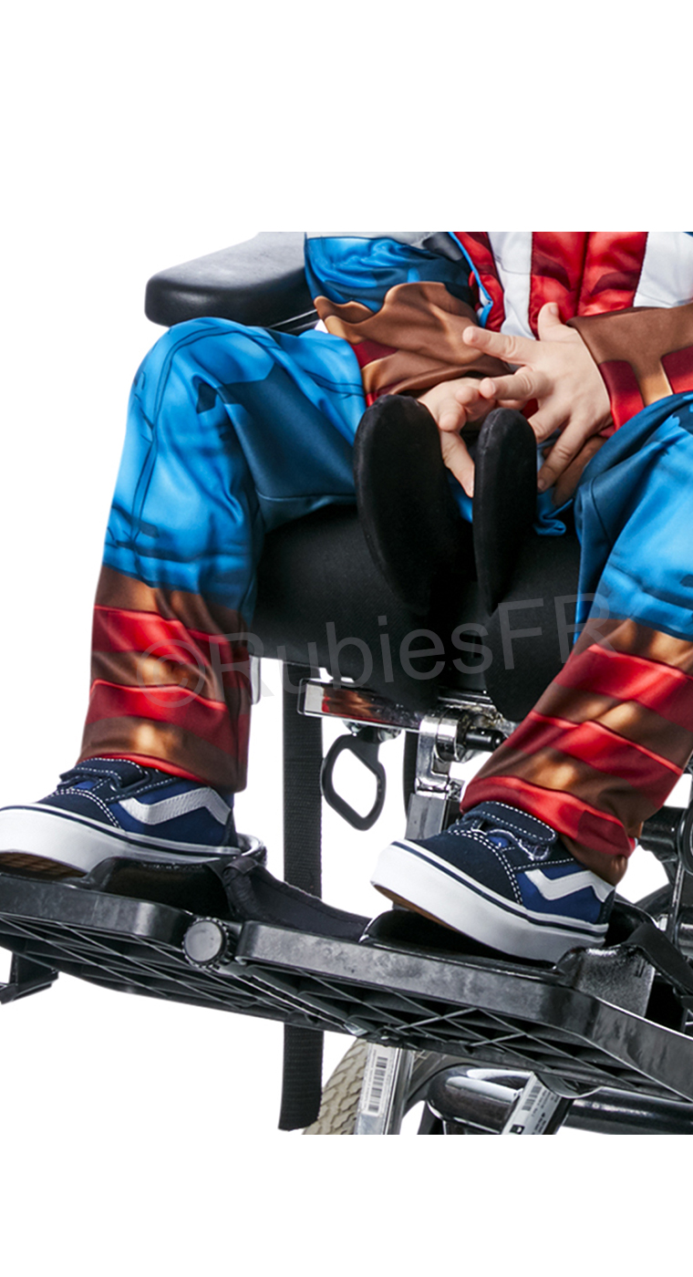 Description: Costume de Captain America adapté pour les enfants à mobilité réduite : Dos et assise complétement dégagés afin de faciliter l’habillage et assurer un confort optimalUn haut imprimé à manches longues avec des muscles rembourrés en 3D, avec une ouverture velcro à l’arrièreUn pantalon impriméUn demi-masque en tissuPackaging: HousseCatégories : AVENGERS, Captain America, Déguisement, Enfant, MARVELThemes: Carnaval, Déguisement luxe