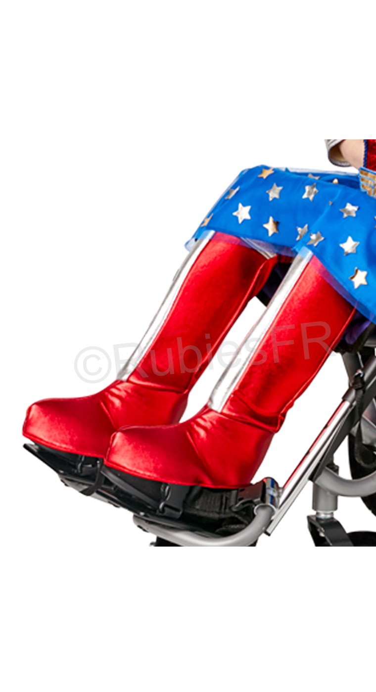 Description: Robe de Wonder Woman adaptée pour les enfants à mobilité réduite : Dos et assise complétement dégagés afin de faciliter l’habillage et assurer un confort optimal Haut de la robe rouge effet velours, avec plastron à sequin avec logo Wonder Woman doré, qui s’ouvre sur le bas. Une jupe bleue avec étoilés doréesUne cape, des gantelets doublés en EVA et un bandeau façon tiareDes couvre-botes doublées de mousse EVAPackaging: HousseCatégories : DC COMICS, Déguisement, Enfant, JUSTICE LEAGUE (DC), Wonder WomanThemes: Carnaval, Déguisement luxe