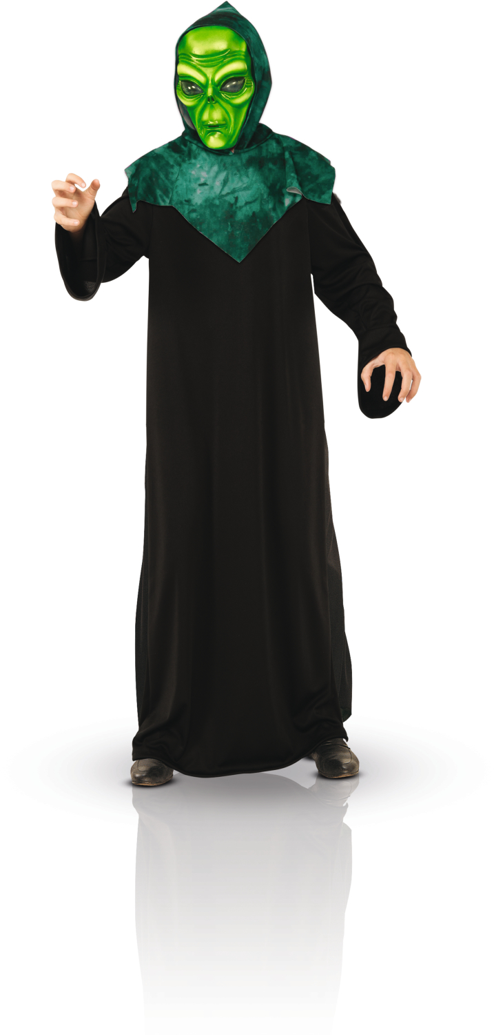 Une robe longue noire à manches évasées avec cagoule. Un masque d’alien * Chaussures non incluses