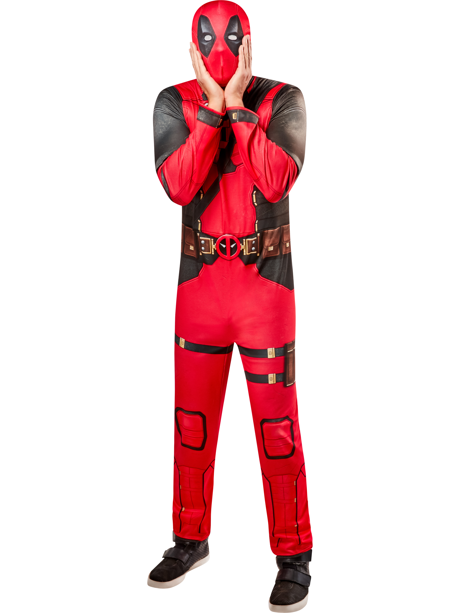 Une cagoule de Deadpool en jersey assortie avec attache velcro dans le cou.