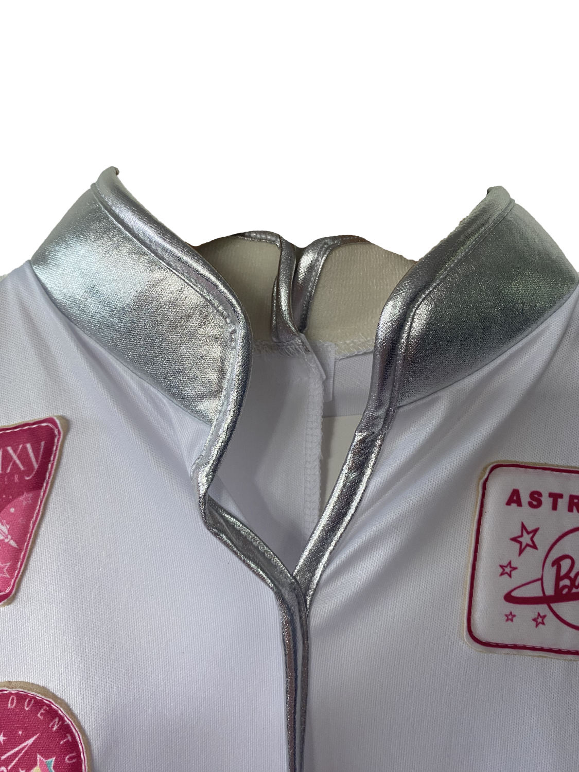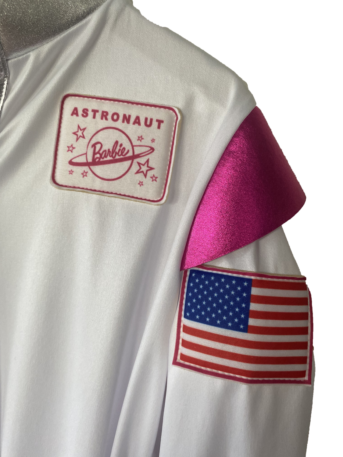 épaulettes et ceinture en mousse roses et couvre-bottes argentés.Packaging: Housse Catégories : BARBIE, Barbie, Déguisement, Déguisement classique, Enfant Themes: Carnaval, Déguisement classique