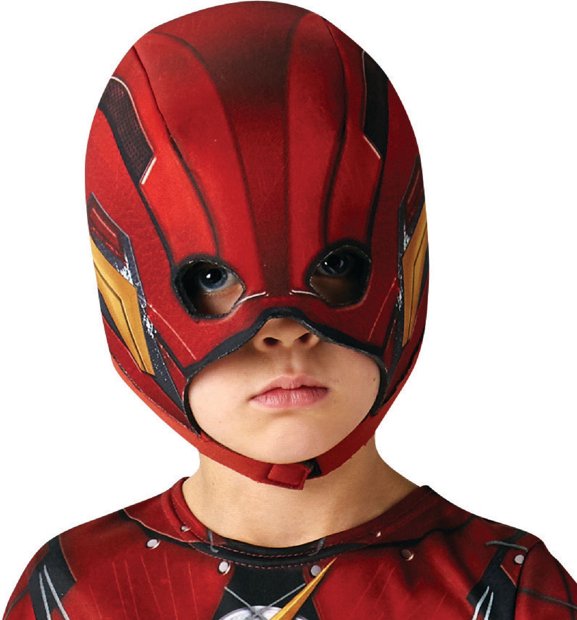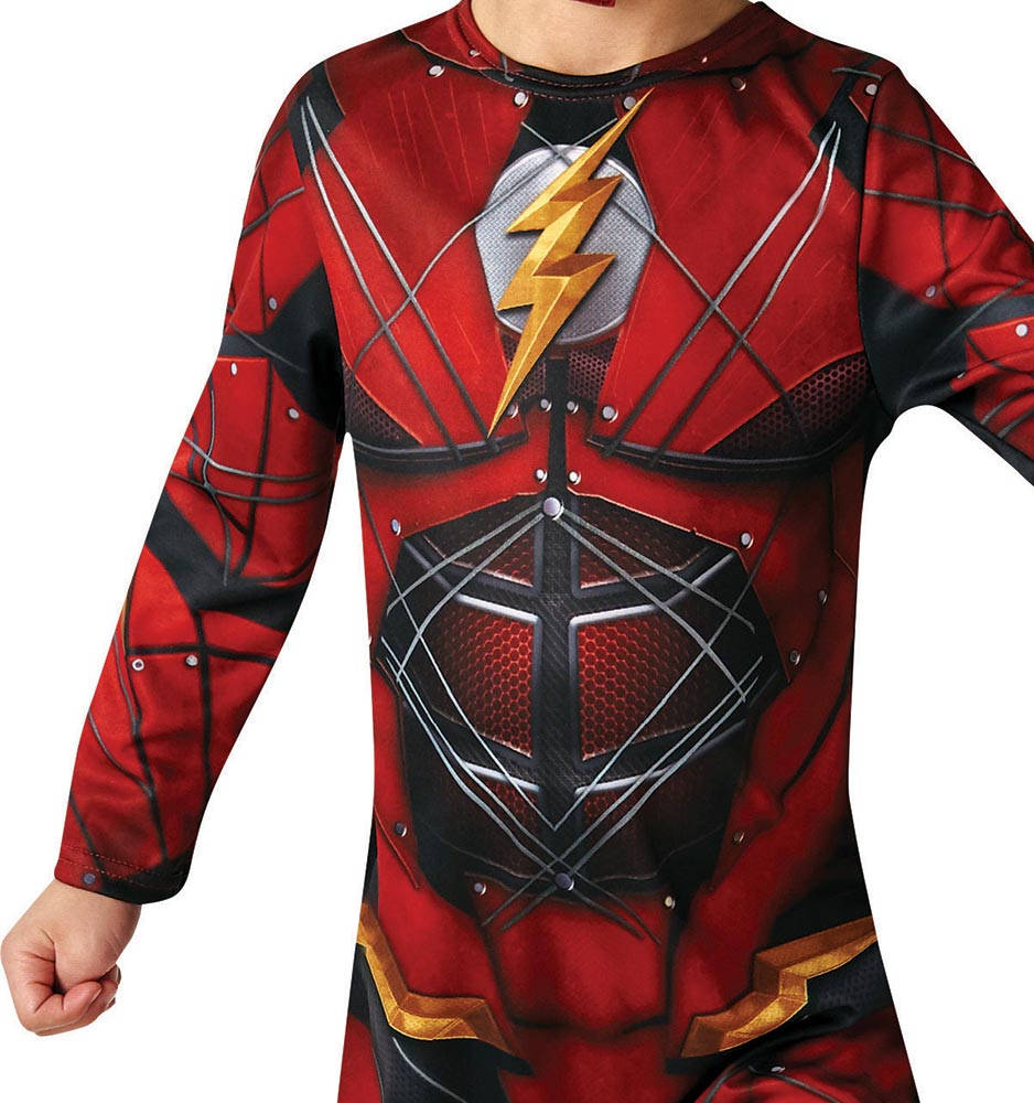Description: Une combinaison à manches longues en tissu jersey rouge imprimé.Une cagoule en mousse imprimée à l’effigie du super-héros Flash avec ouvertures pour les yeux et attache velcro sous le menton.Packaging: HousseCatégories : DC COMICS, FlashThemes: Carnaval, Déguisement classique
