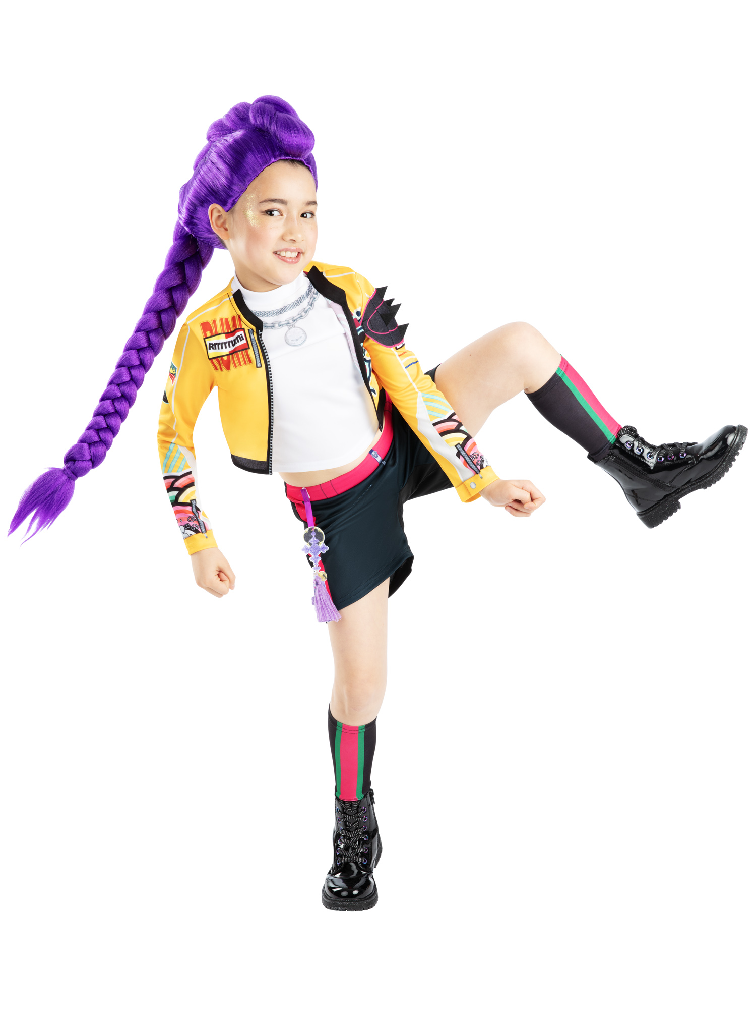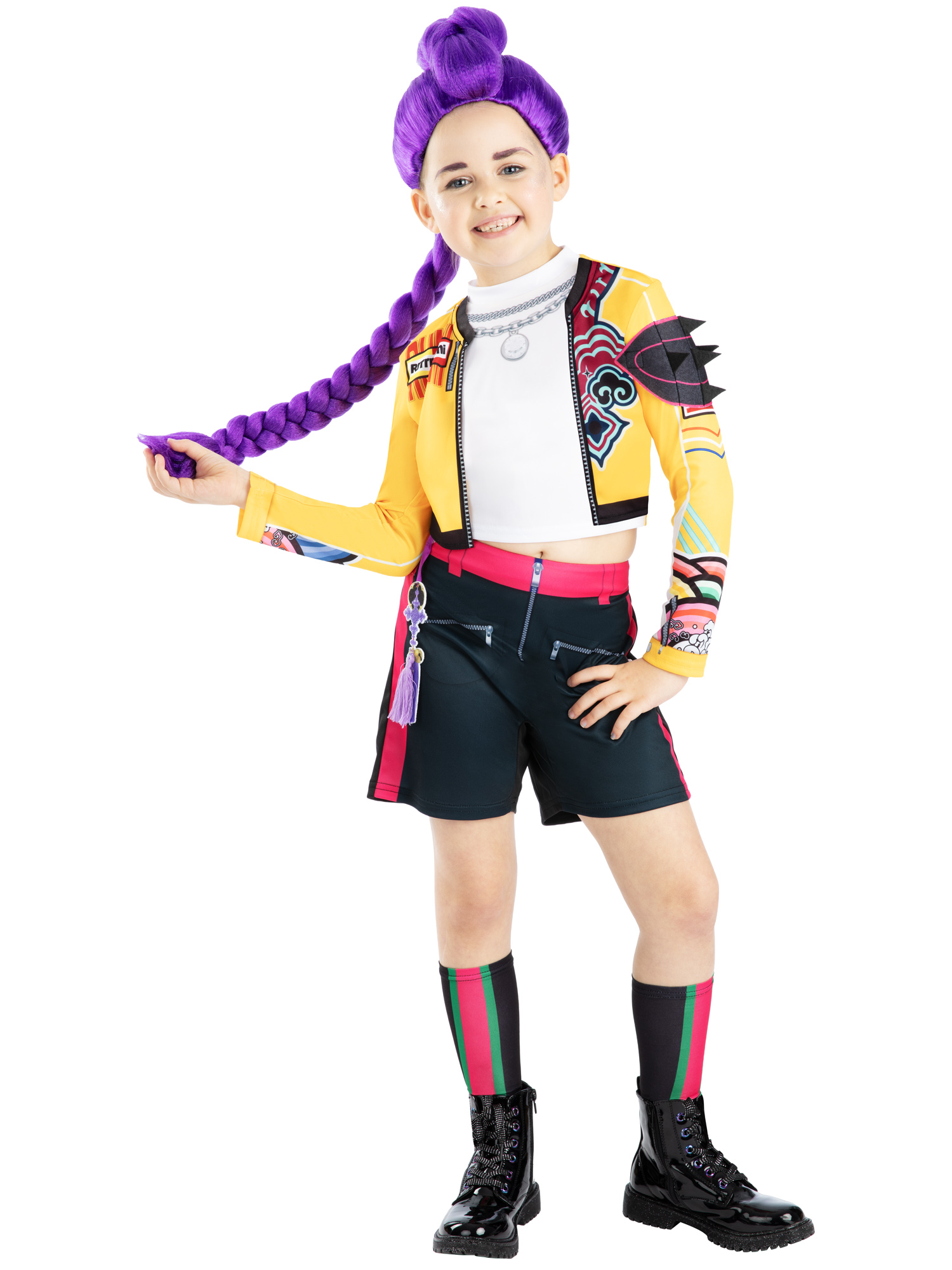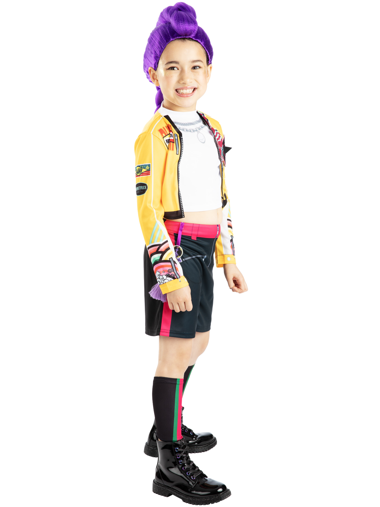 Une veste en jersey imprimée jaune et noirescintillante avec motifs et épaulette en feutrine avec attache velcro.