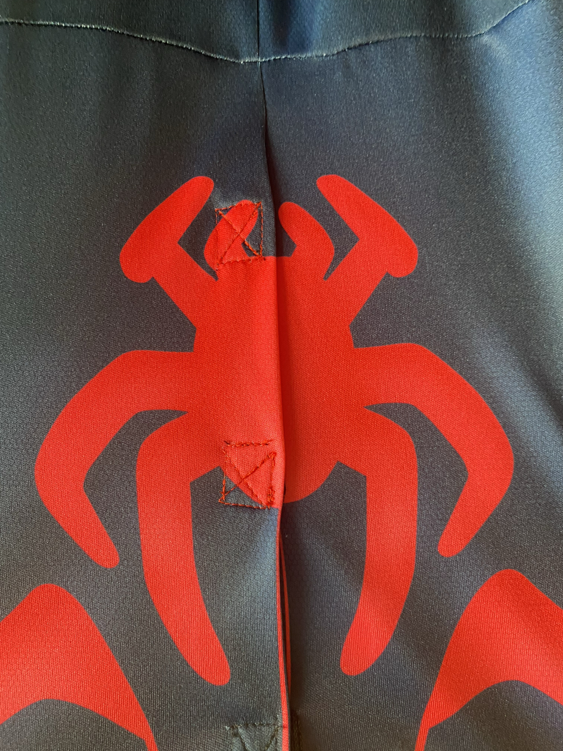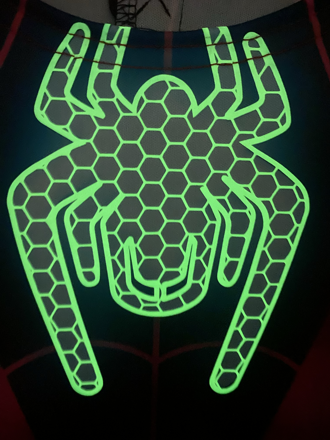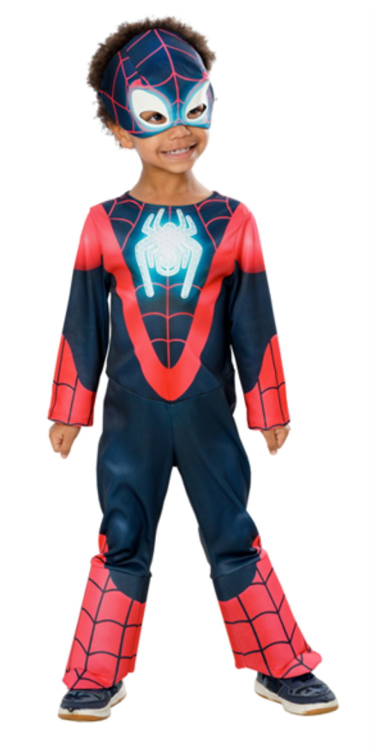 Description: Une combinaison en jersey imprimée rouge et noire avec logo phosphorescent sur le buste.Un masque en jersey imprimé assorti avec yeux phosphorescents.Packaging: HousseCatégories : SPIDEY & AF, SpinnThemes: Carnaval, Déguisement classique