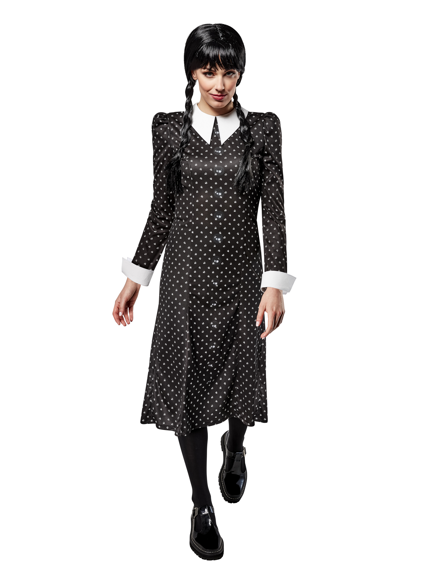 Une robe à manches longues avec motifs imprimés.Manches et col chemise blancs intégrés.