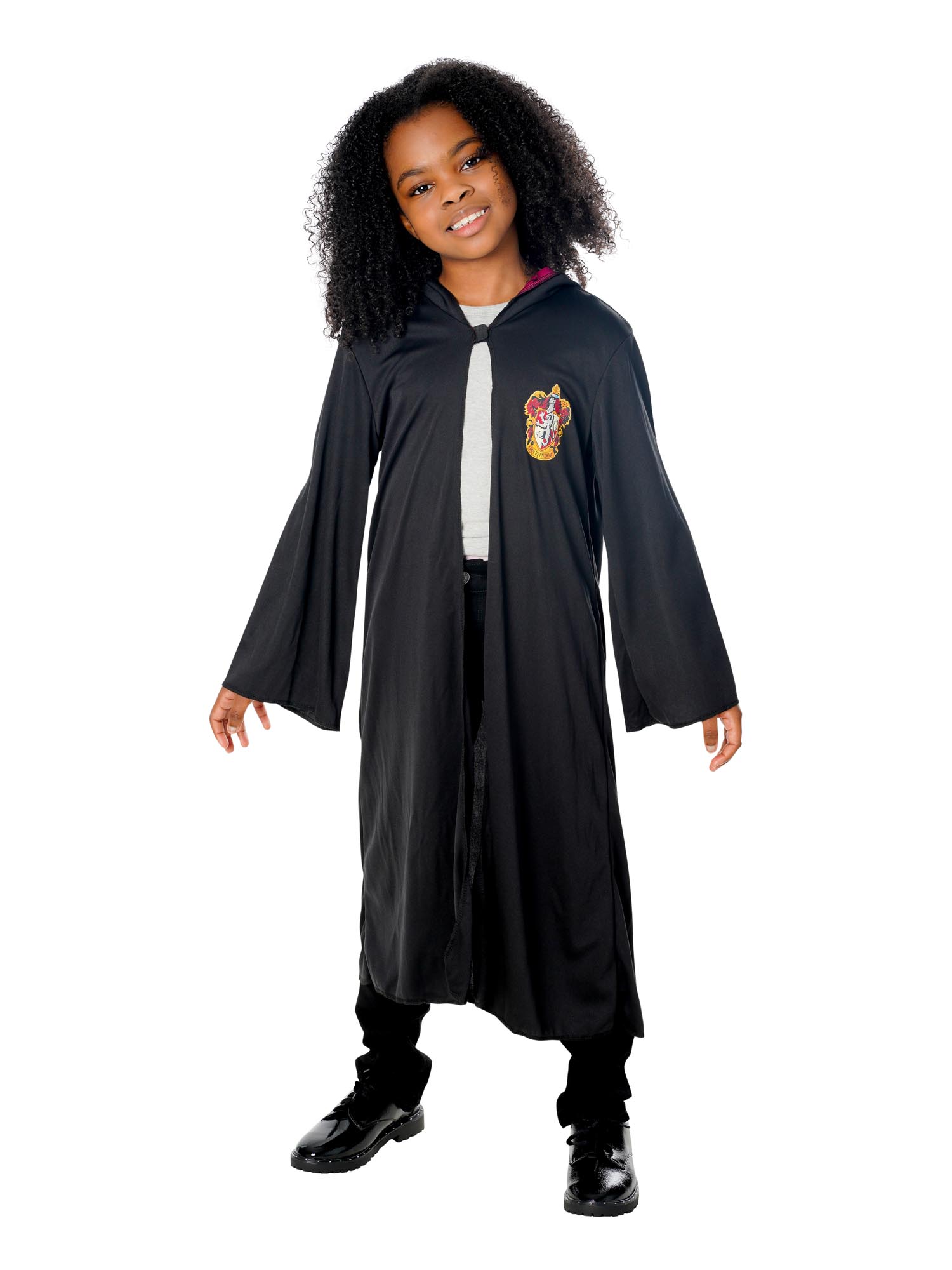 Une robe de sorcier en jersey noir avec capuche et blason Gryffondor.