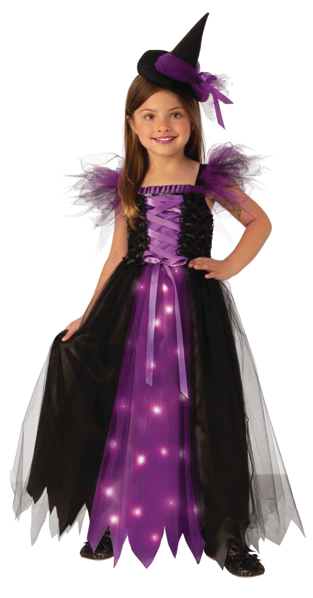 Style: R700903FROHDescription: Une robe en satin violette avec surjupe en tulleUn corsage intégré à la robe avec épaulettesLED clignotantes à l’intérieur de déguisementPiles incluses*Chapeau non inclusPackaging: Cintre cartonCatégories : Déguisement, Enfant, GENERIQUE HLW, Halloween, Lumineux, SorcièreThemes: Déguisement luxe, Halloween