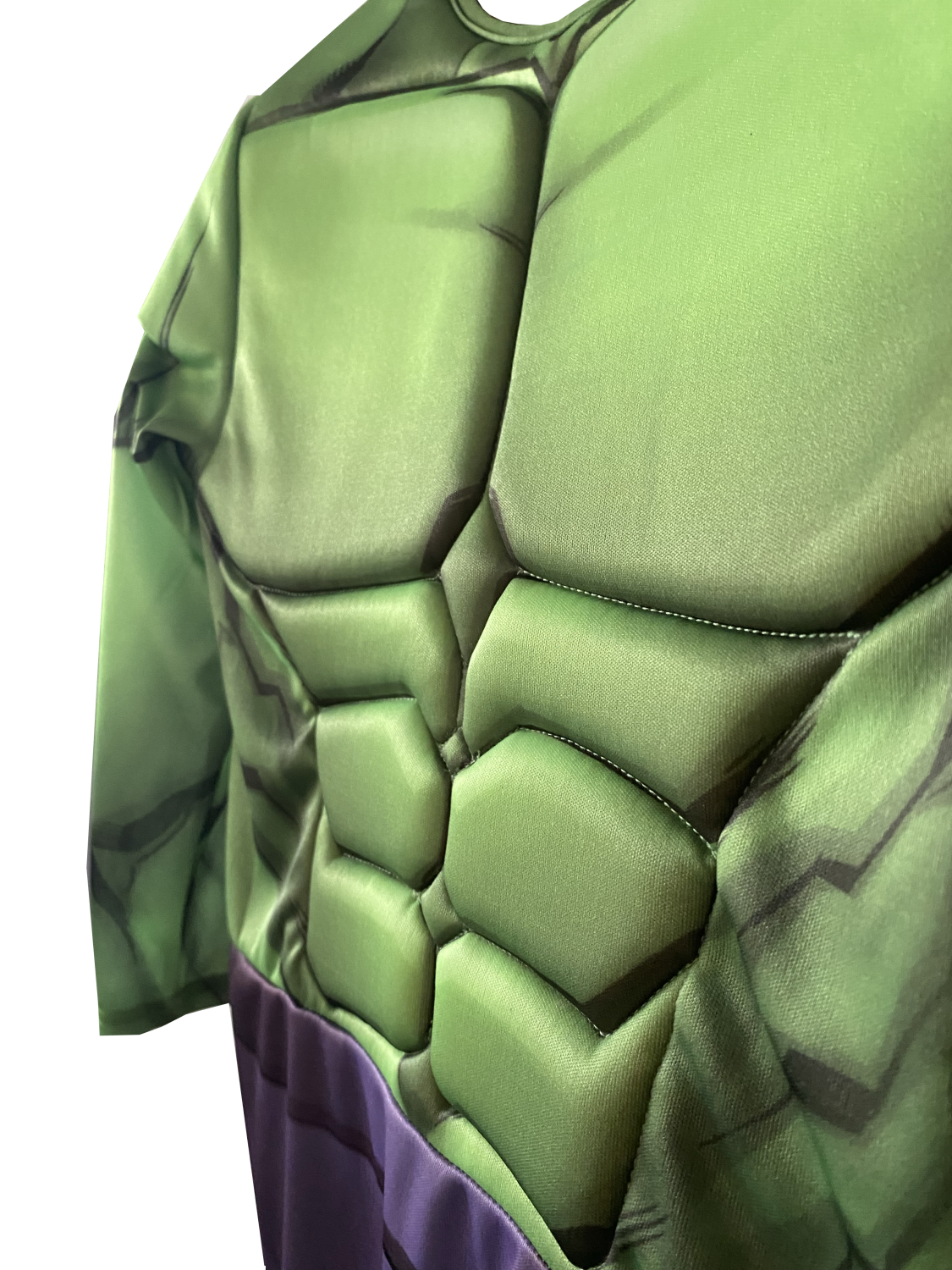 Description: Une combinaison verte et violette à manches longues en jersey imprimé effet « muscles » avec attache velcro dans le dos et torse rembourré.Un masque en mousse assorti à l’effigie de Hulk avec attache velcro à l’arrière et ouvertures pour les yeux.Packaging: HousseCatégories : AVENGERS, Déguisement, Déguisement luxe, Enfant, Hulk, HULK, MARVELThemes: Carnaval, Déguisement luxe