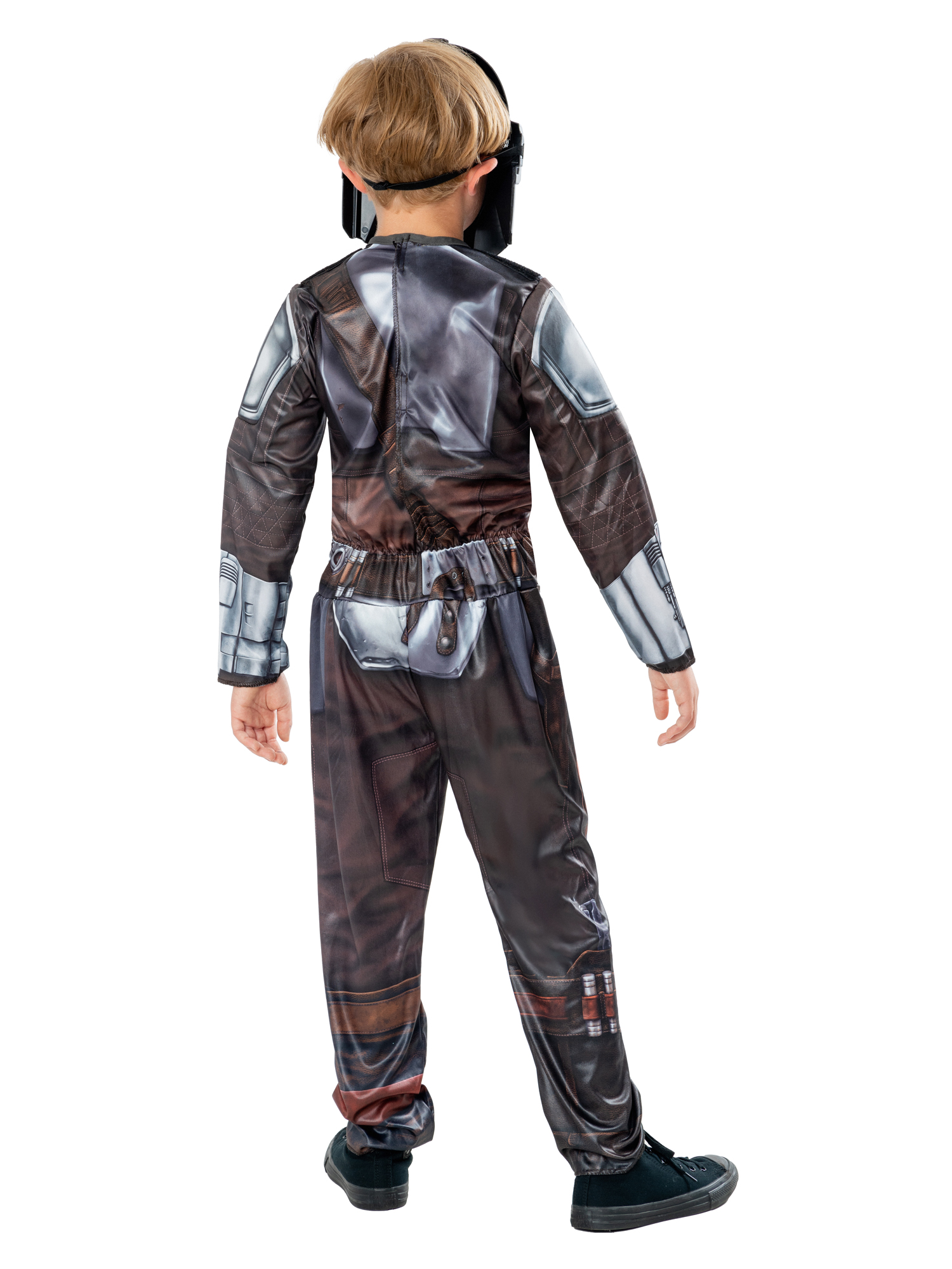 Description: Une combinaison à manches longues en tissu jersey imprimée imitation « armure ».Top rembourré et macaron lenticulaire avec portrait de Baby Yoda sur le buste.Une cape longue en tissu noir avec attaches velcro sur les épaules.Un masque en PVC à l’effigie du Mandalorian avec attache élastique à l’arrière.Packaging: Cintre Carton Catégories : , , , , Themes: ,