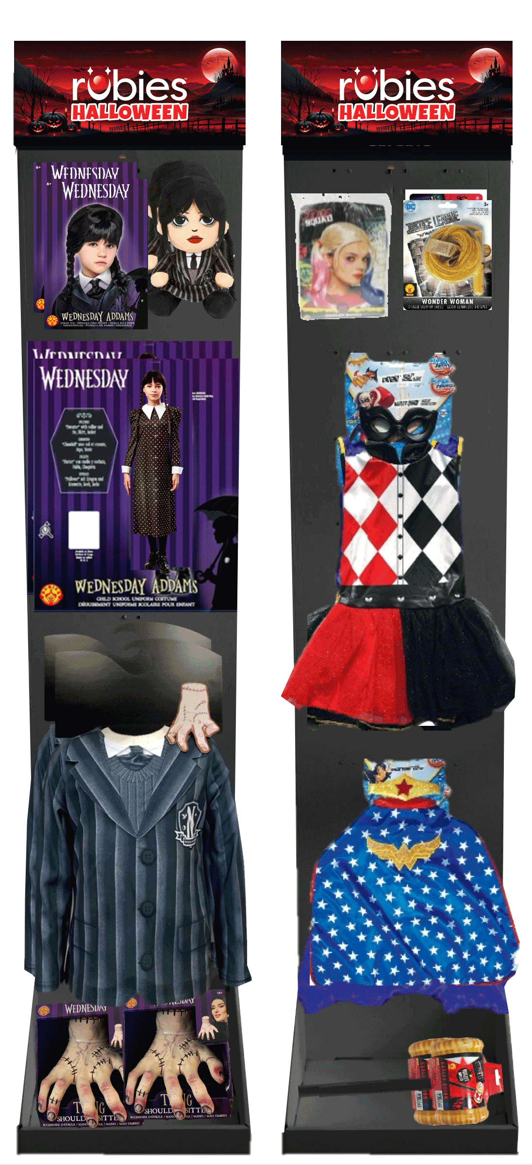 PRÉSENTOIR DOUBLE FACE MERCREDI ET DCSHG 58cmx38cmx1.90m