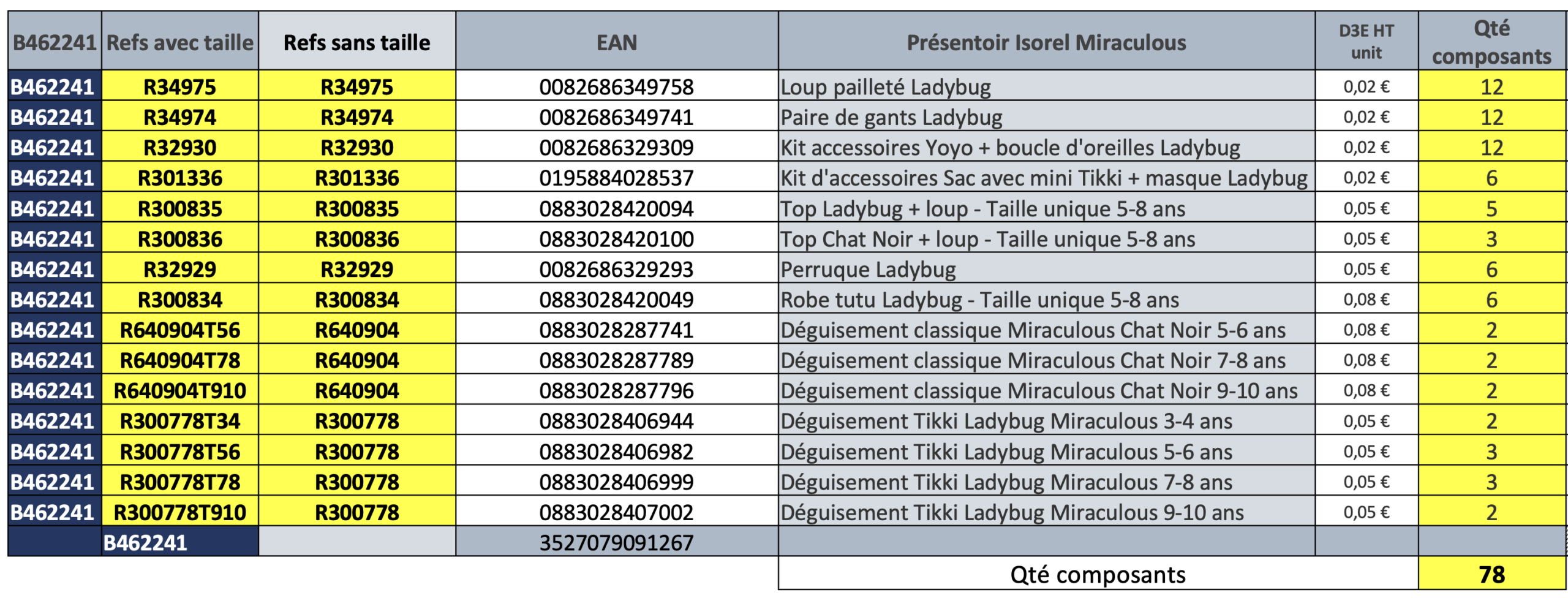 Style: B462241 Packaging: TOTEM CARTON Catégorie : Theme: