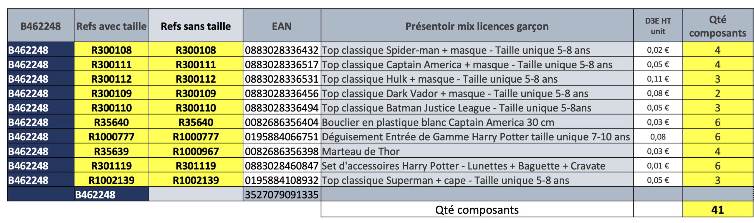 PRESENTOIR ISOREL MIX LICENCES GARCON – 70cmx40cmx2.30m
