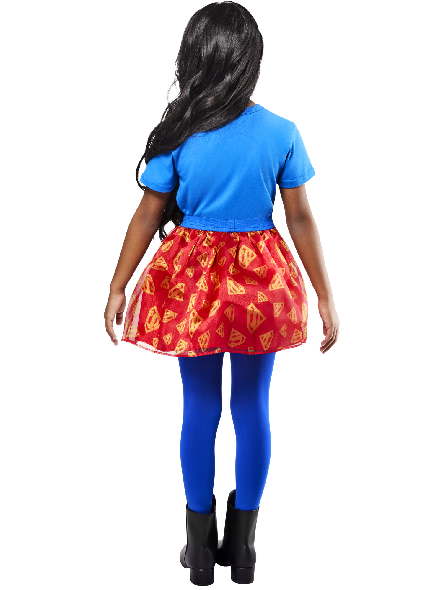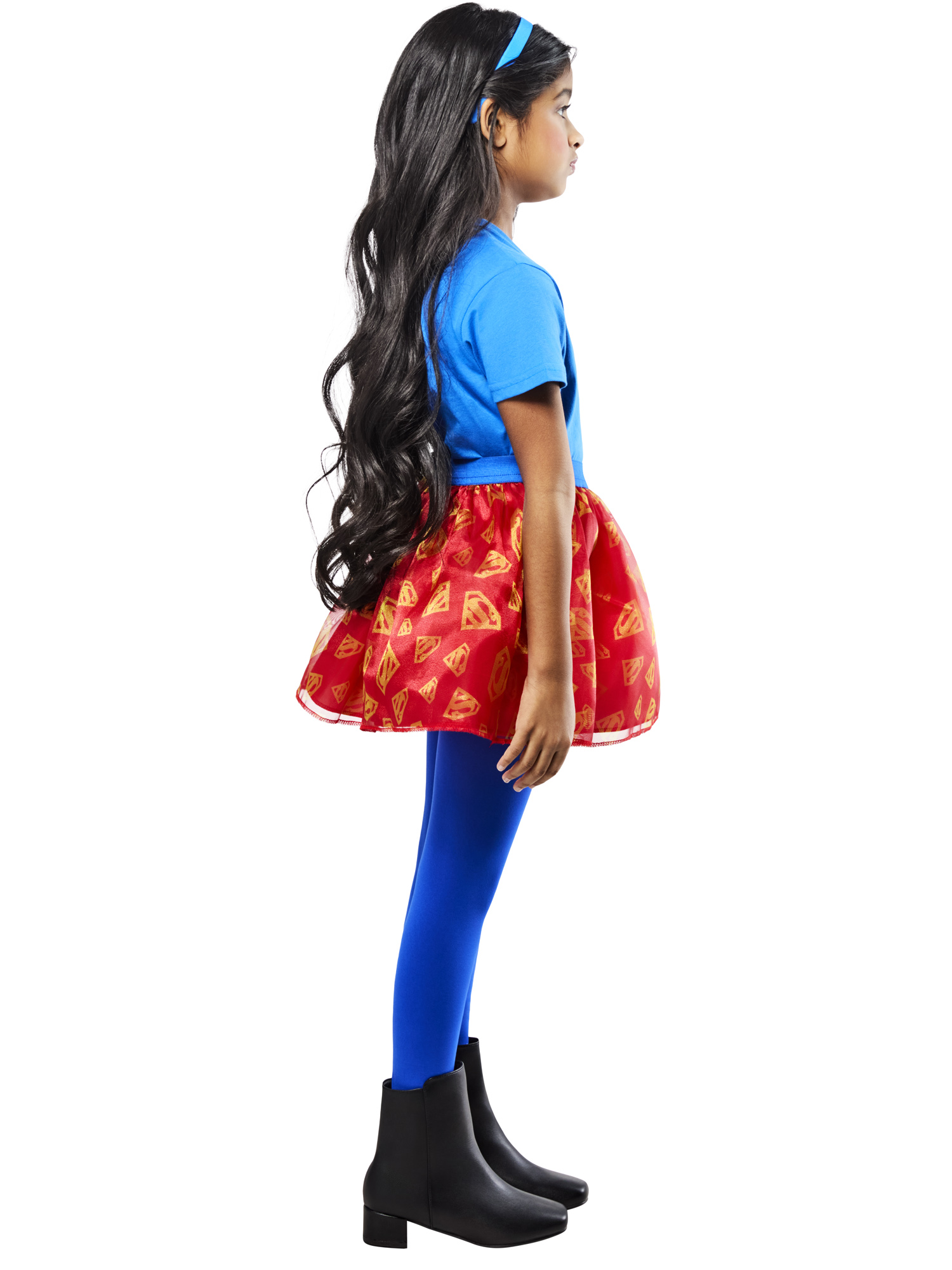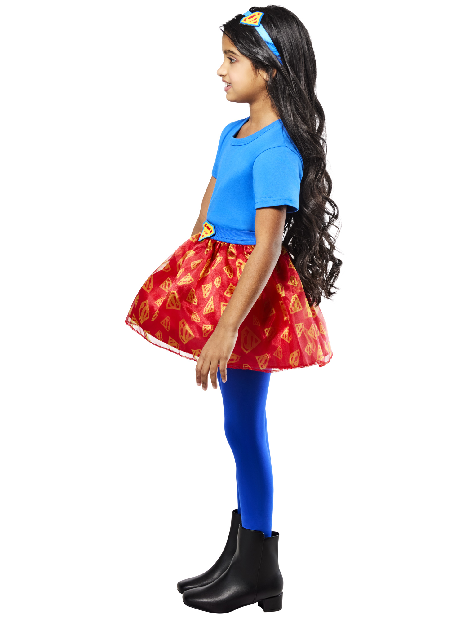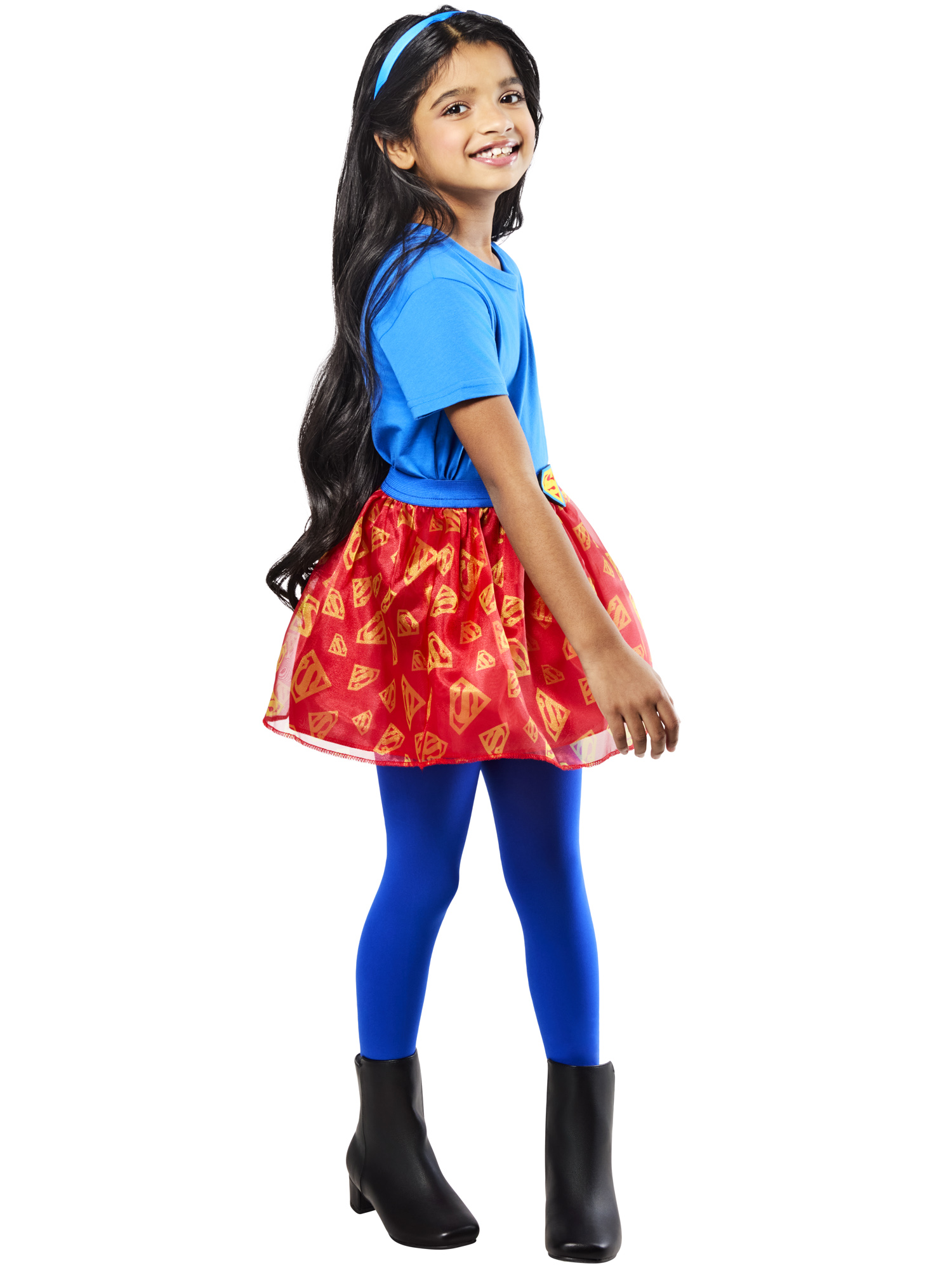 Une jupe tutu avec tulles scintillants et logos Supergirl imprimés.