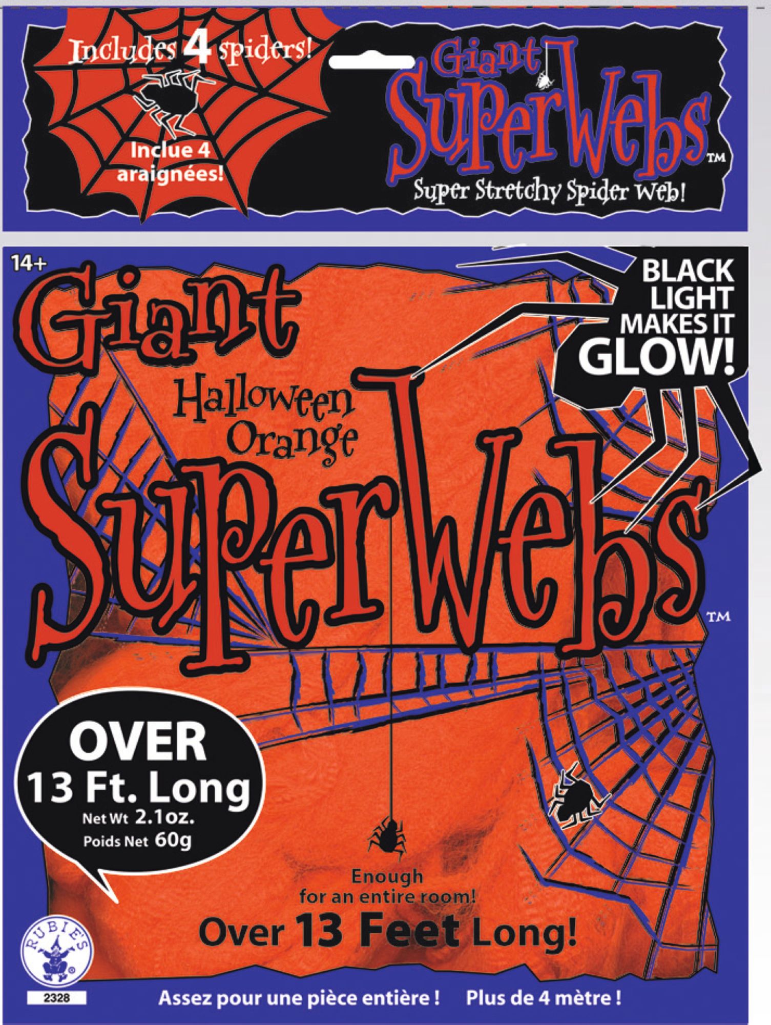Style: R2328 Description: Une fausse toile d’araignée de 60g pouvant être étirée jusqu’à 3 mètres 4 araignées en plastiquePackaging: Sachet pegboardable Catégories : , , Themes: ,