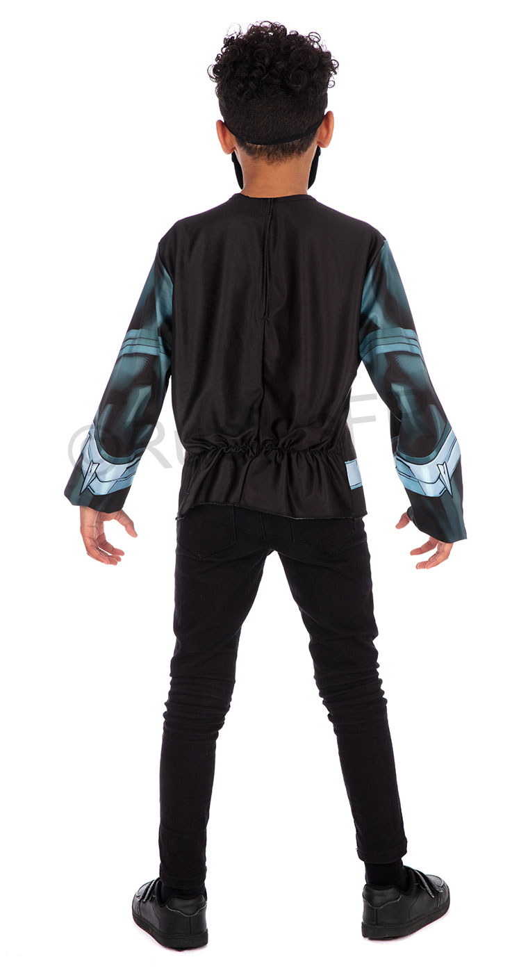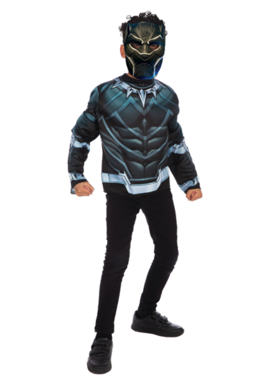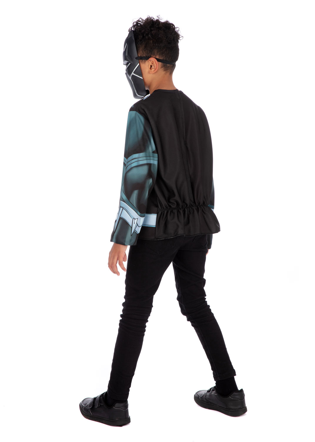 Description: Un top en jersey noir et gris imprimé avec effet « armure » avec ceinture élastique à l’arrière et système de fermeture velcro au niveau du col.Un masque en PVC assorti à l’effigie de Black Panther avec attache velcro à l’arrière et ouvertures pour les yeux.Packaging: Cintre carton Catégories : , , , , Themes: ,