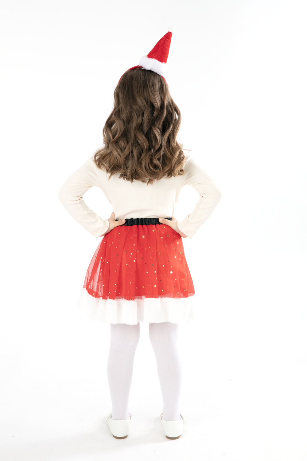 Un tutu en tulle doublé qui est composée d’une rangée de fausse fourrure et de l’imitation de la ceinture du père noël.
