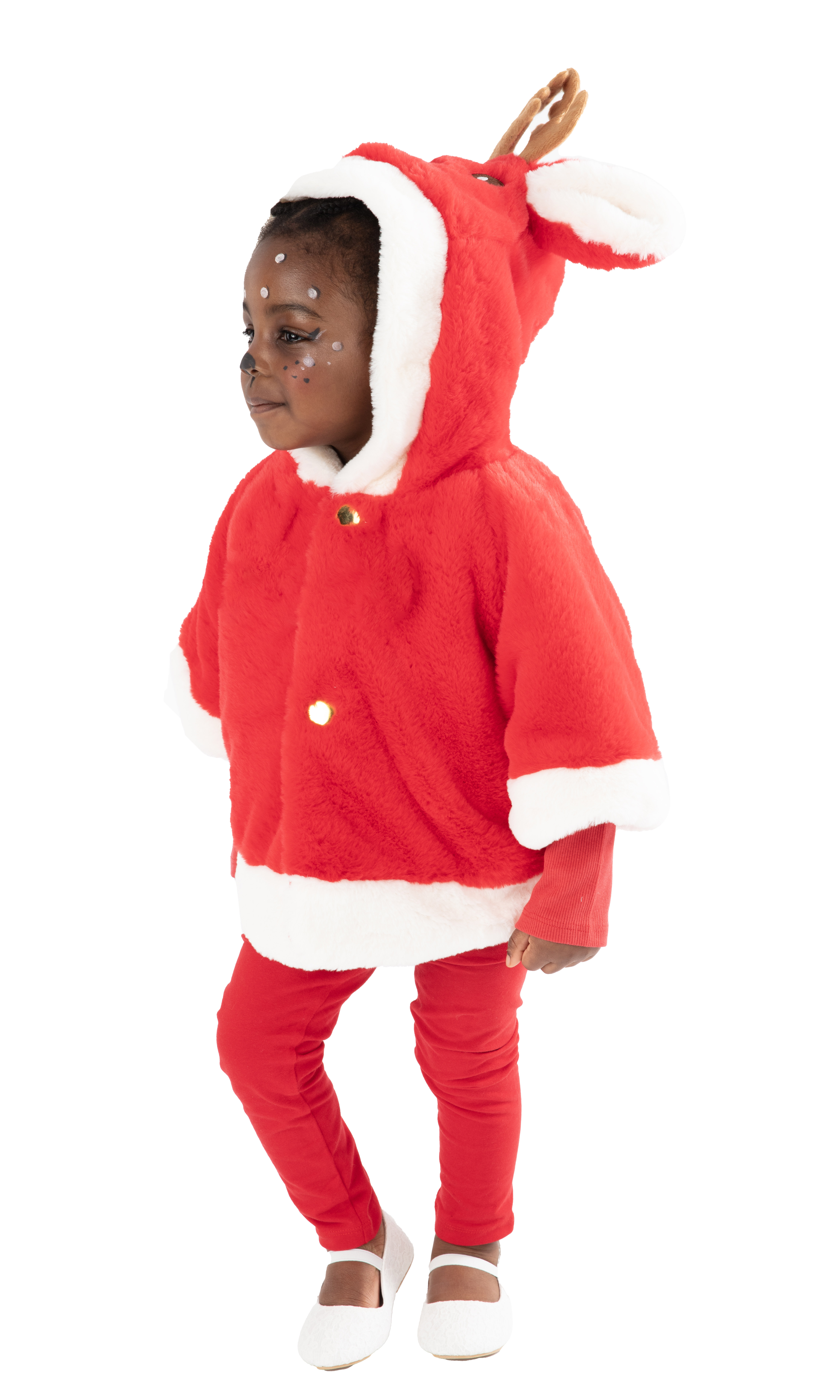 Elle possède une capuche avec oreilles et bois de rennes rembourrées.